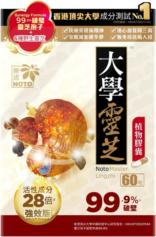 100% Natural NOTO Master Reishi Mushroom Lingzhi Capsules for Energy and Immune Support - 60 Count