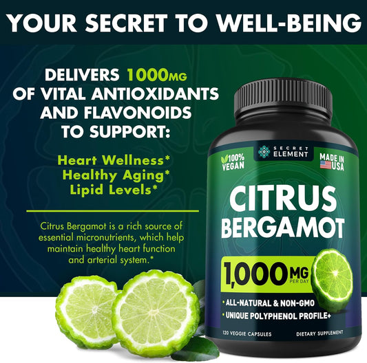 1000mg Citrus Bergamot Extract Capsules - Heart & Immune Support Supplement for Healthy Aging - Vegan Bergamot Supplement