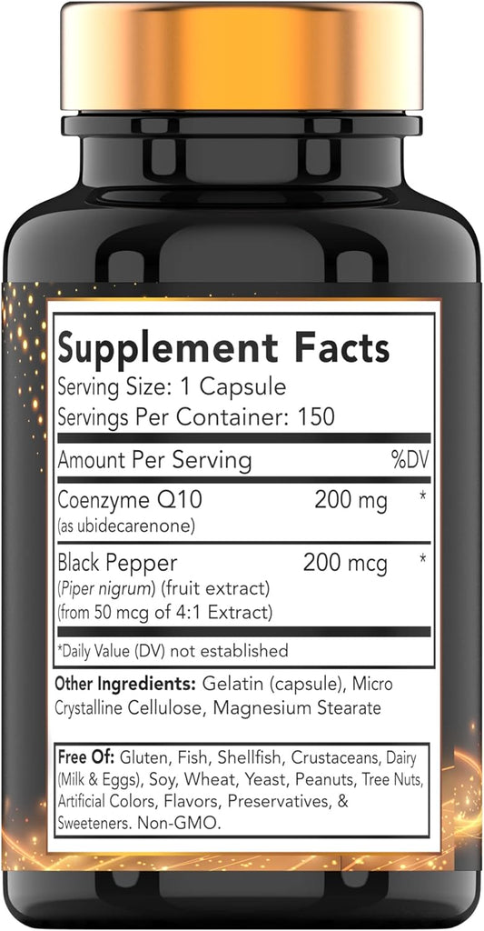 200mg CoQ-10 Capsules with Black Pepper Extract - 150 Count | 5 Month Supply | Antioxidant | Rapid Release Formula | Coenzyme Q-10 Supplement