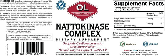 30-Day Supply of Olympian Labs Nattokinase Complex with Grape Seed Extract for Heart Health Support
