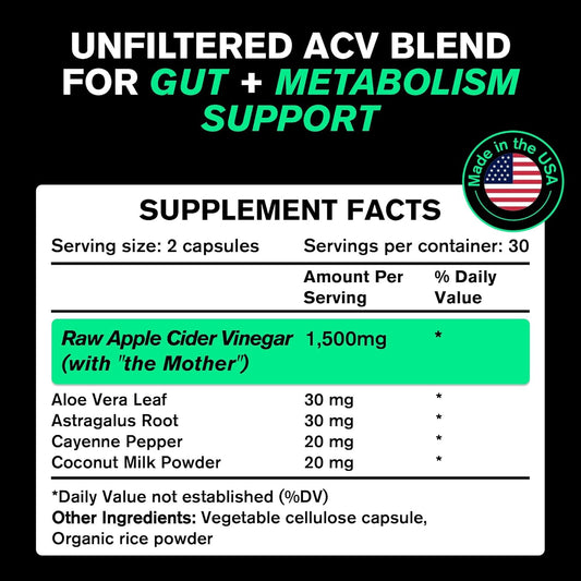 Organic Apple Cider Vinegar Capsules with The Mother - Energy Boost & Heart, Gut, Immune Health - Gluten & Dairy Free - Raw Probiotic & Prebiotic - Vegan with Astragalus Root