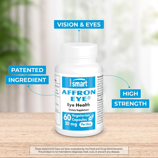 Affron Eye 20mg per Day Saffron Supplement with 3% Crocin for Macular Support - Non-GMO & Gluten Free - 60 Vegetarian Capsules