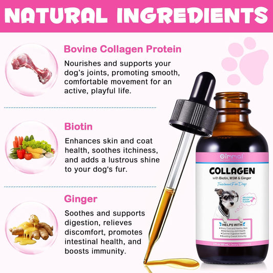 Dog Collagen Liquid Drops with Biotin, MSM & Ginger for Immunity & Digestive Support, Itch Relief, Skin & Coat, Joint Health - 60ml