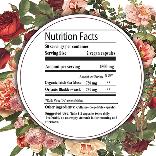 Organic Irish Sea Moss Capsules with Bladderwrack - Vegan, Non-GMO, Dr Sebi Inspired Blend