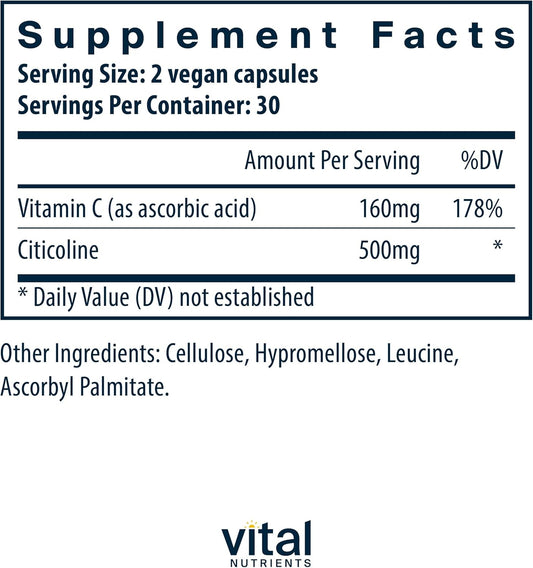 Citicoline Supplement for Mental Focus and Attention - 60 Vegetarian Capsules - 250mg - Vital Nutrients