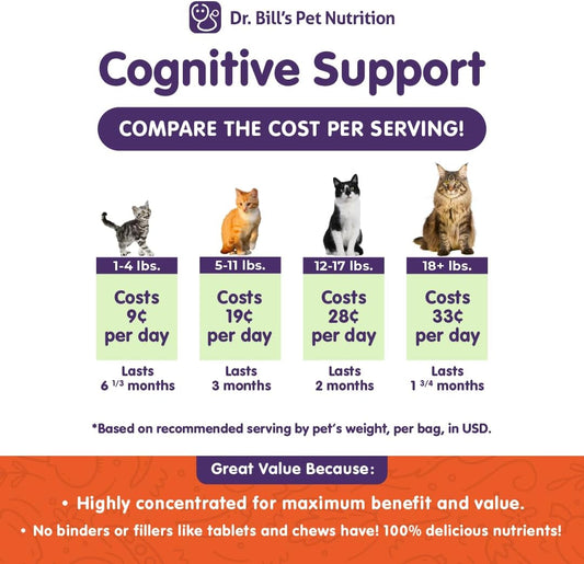 Feline Memory Support Supplement with Gingko Biloba, L-Carnosine, B-12, L-Glutamine, L-Tyrosine, and DHA