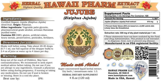 Hawaii Pharm Jujube Liquid Extract, Ziziphus Jujuba Fruit Powder Tincture Supplement, 4 oz Bottle