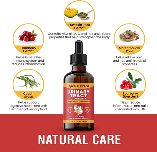 Cranberry UTI Supplement for Cats and Dogs - Special Breed Urinary Tract Infection Treatment, Kidney and Bladder Support - 2 oz