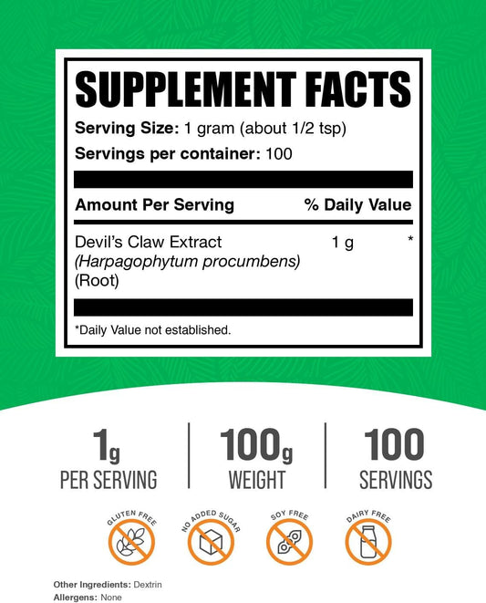 Devil's Claw Extract Powder - Herbal Supplement from Devil's Claw Root - Gluten Free - 1000mg per Serving - 100g (3.5 oz) - 1 Pack