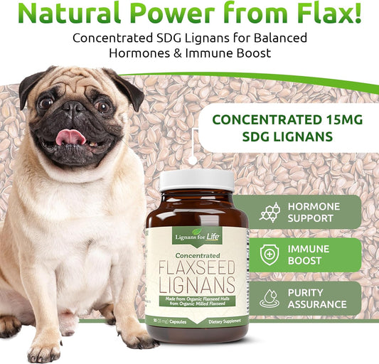 Organic Flaxseed Lignans Capsules for Dogs & Women - 15mg Supplement for Hormone Support, High-Fiber Formula