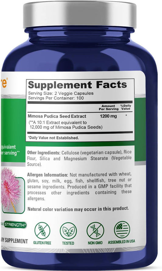 12,000 mg Mimosa Pudica Seed Extract Capsules - 200 Vegan Capsules, Non-GMO & Gluten Free