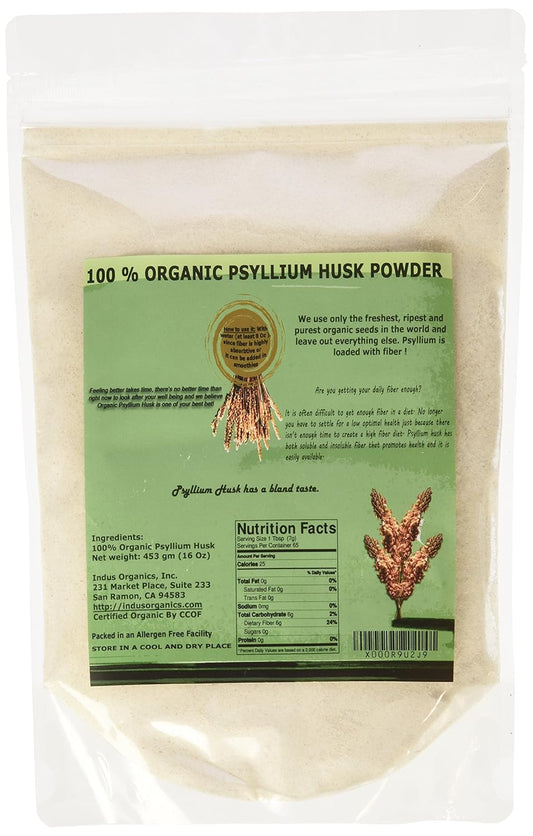1 lb Bag of Premium Grade Indus Organics Psyllium Husk Powder - Freshly Packed and High Quality