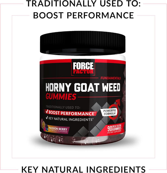 Force Factor Horny Goat Weed Gummies for Men - Natural Male Drive & Vitality Supplement - Superior Absorption - Passion Berry Flavor - 90 Count