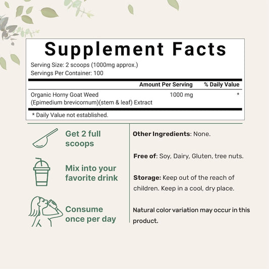 Organic Pure Horny Goat Weed Powder with Active Icariins - 100g - Energy & Immune Support for Men and Women - Filler-Free & VeganVendor:Micro IngredientsRegular price $122.12 AUDRegular priceUnit price / per-