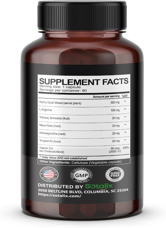 Men's Testosterone Support Capsules with Tongkat Ali, Maca Root, and Horny Goat Weed - Energy Supplements with Tribulus Terrestris and Saw Palmetto Extract - 60 Capsules