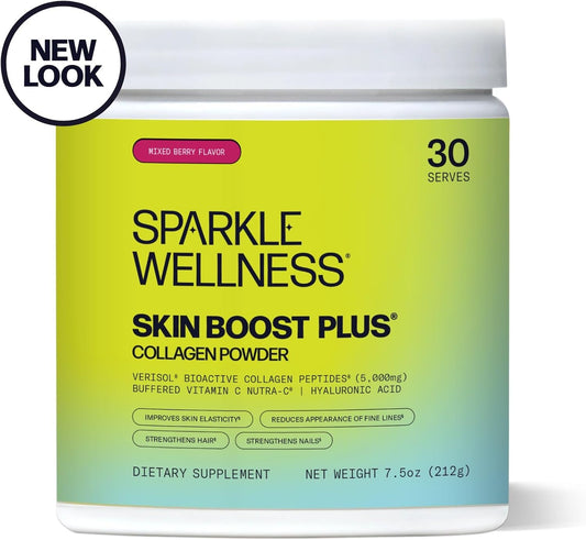 3-Pack Sparkle Wellness Skin Boost Plus (Mixed Berry) - Collagen Powder with VERISOL Peptides, Vitamin C, and Hyaluronic Acid for Improved Skin Elasticity