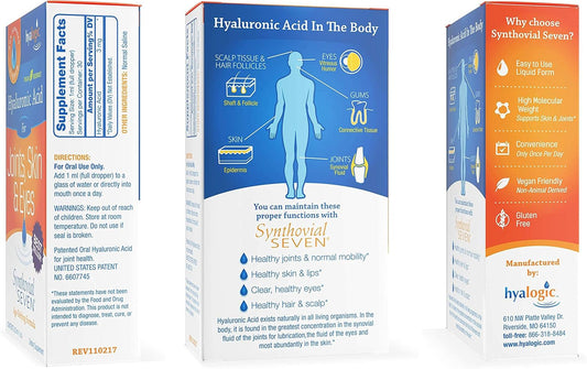 Hyalogic Synthovial Seven Oral Hyaluronic Acid Supplement 1oz with Bonus Lip Balm Stick - Hydration for Skin, Body, and Lips