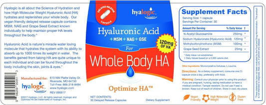 Hyalogic Hyaluronic Acid Combo Capsules with Glucosamine MSM | Supports Healthy Joints, Eyes, Skin | Promotes Skin Health | 120mg | Non-GMO (30 Count)