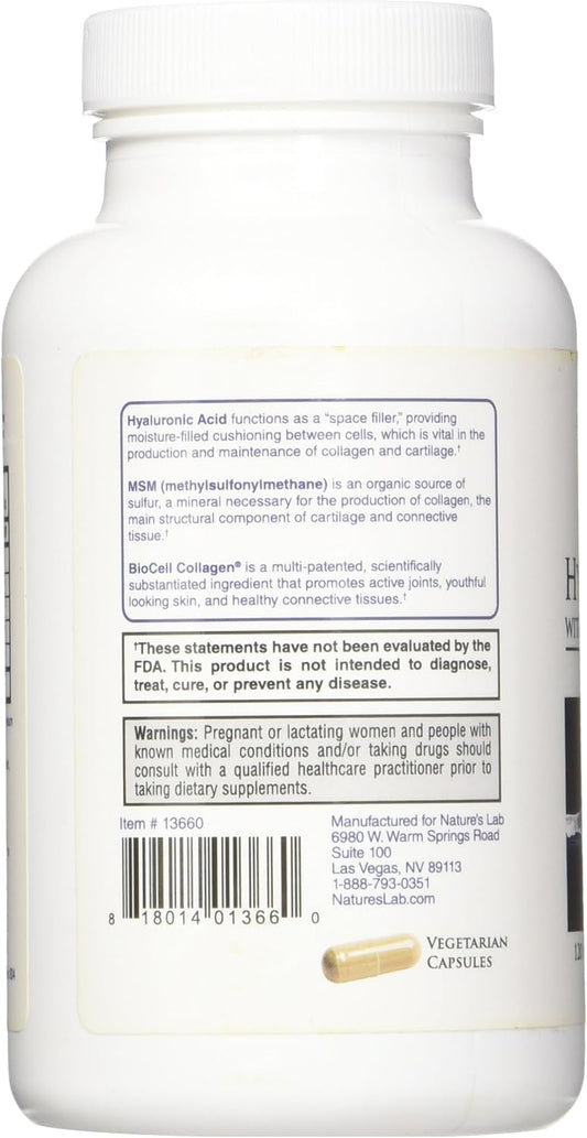 Hyaluronic Acid with Biocell Collagen and MSM Capsules - Skin and Joint Health Support - 120 Count