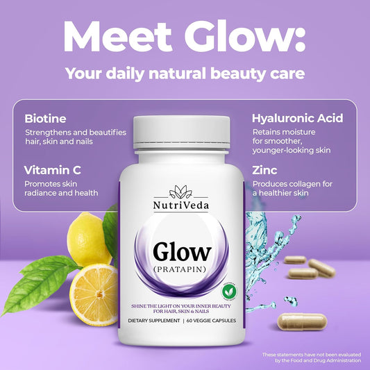 Nutriveda Glow Capsules: Premium Hair, Skin, and Nail Vitamins for Men and Women - Beauty & Wellness Support - 60 Capsules