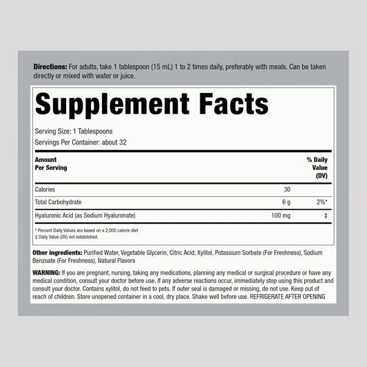 Piping Rock Hyaluronic Acid Liquid Supplement 100mg - 16 fl oz Mixed Berry Flavor - Vegetarian, Non-GMO, Gluten-Free