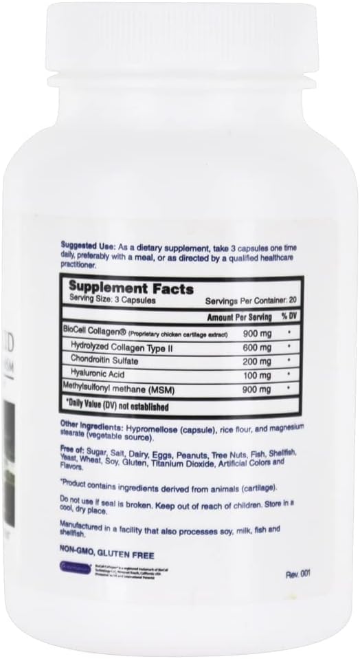 Skin & Joint Health Supplement with Hyaluronic Acid, Biocell Collagen, and MSM - 60 Capsules