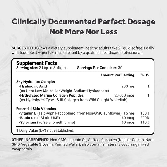Ultra Low Molecular Weight Hyaluronic Acid 200mg with Collagen, Biotin, Selenium, and Vitamin E for Hair, Skin, Nails, and Joints - 60 Softgels