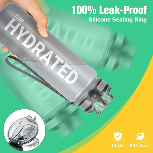 32oz Sahara Sailor Water Bottle - Durable Leakproof Tritan Bottle with Time Marker, BPA Free, Wide Mouth, Easy Clean Brush - Ideal for Gym, Travel, School, Office - Motivational Hydration (1 Bottle)