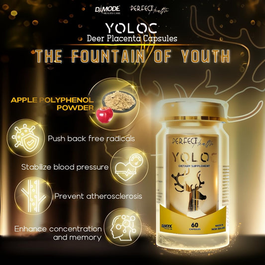 60 YOLOC New Zealand Deer Placenta Capsules with Algae DHA, Fucoidan, and Apple Polyphenol - Dietary Supplements for Anti-Aging, Heart, Neural Health, and Immune Support
