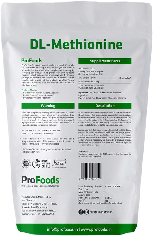 1 kg Generic D4d DL Methionine Powder - High-Quality Amino Acid Supplement