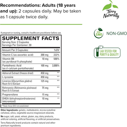 2 Pack Terry Naturally Adrenaplex Capsules - Maximum Adrenal Support Supplement - Non-GMO, Gluten Free - 60 Servings