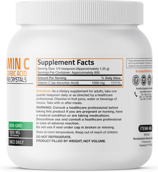 1 KG Bronson Vitamin C Powder Crystals - Pure Ascorbic Acid for Healthy Immune System & Cell Protection - Non GMO Antioxidant