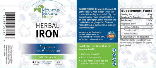 Natural Iron Supplement - Mountain Meadow Herbs Herbal Iron 2 oz - Supports Iron Metabolism & Absorption with Gentle Herbs