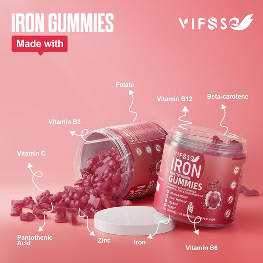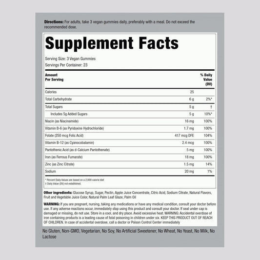 Vegan Iron Supplement Gummies with Vitamins for Energy Support, Anemia, 2 Pack, 120 Count