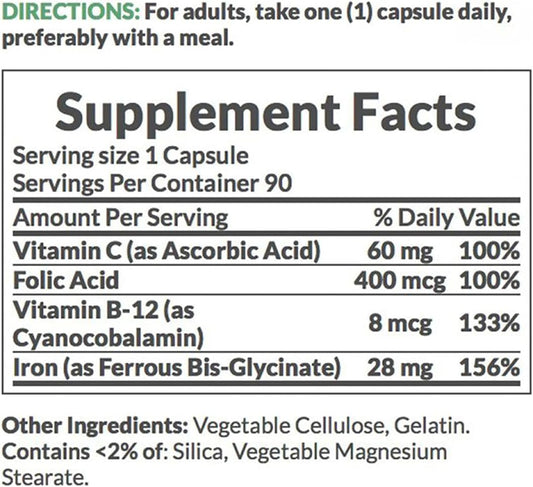 Pack of 270 Nature's Bounty Gentle Iron 28 mg Capsules for Gentle Iron Support