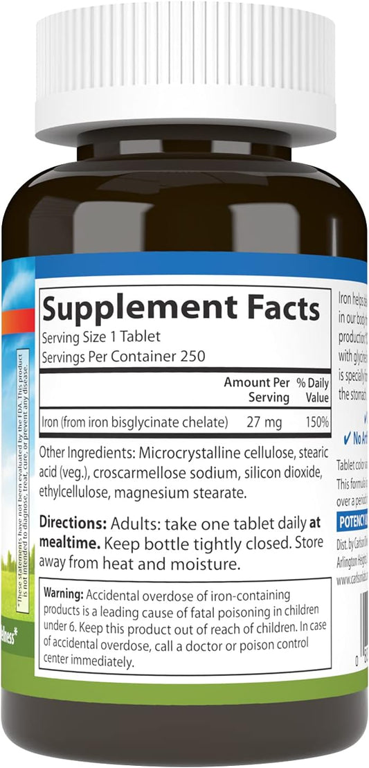 Chelated Iron 27mg Supplement by Carlson Labs - 250 Tablets for Iron Deficiency Support