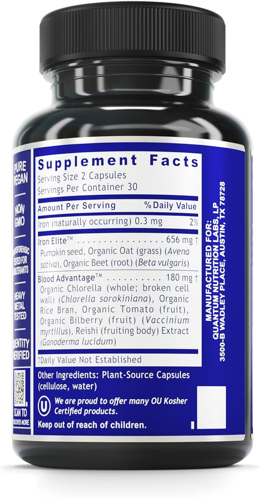 Naturally Sourced Vegan Iron Supplement for Men and Women - Gentle Iron Support for Healthy Blood - 60 Capsules