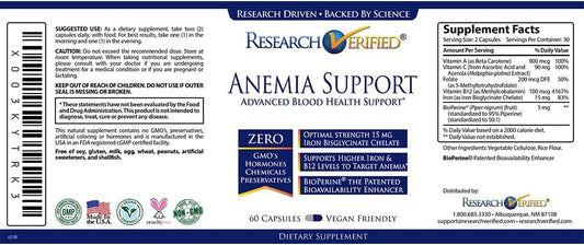 Anemia Support Supplement - Boost Iron Levels, Enhance Hemoglobin, Increase Energy - Iron, Vitamin C, A, B12, Folate, BioPerine - 180 Vegan Capsules