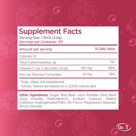 Dr. T Iron Force Powder Packs - Boost Red Blood Cell Production & Energy - 30 Single-Serve Packs