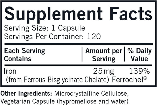 Kirkman Iron 25 mg Bio-Max Capsules - Hypoallergenic - 120 Count