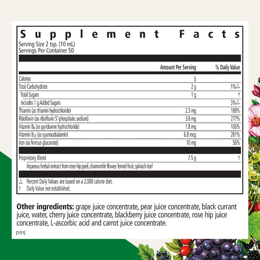 Liquid Iron Supplement with B Complex Vitamins, Vitamin C & Herbs - Vegan Energy Support Formula - Floradix Floravital - 17 fl oz