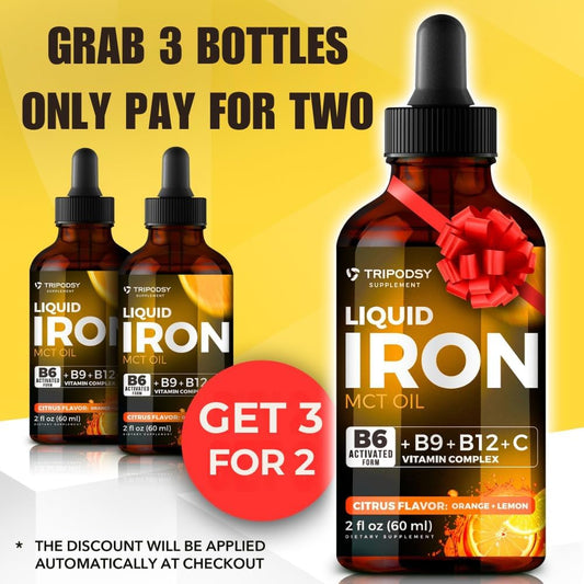 Liquid Iron Supplement with B6, B9, B12, Vitamin C - Iron Drops for Anemia, Blood Builder, Folate - Immune Support - 2 Fl Oz, Citrus