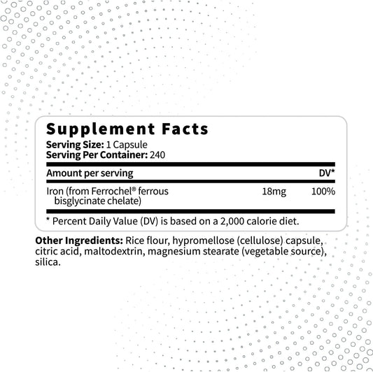 Ferrochel Type Zero Iron Chelate Capsules - 18 MG, 240 Capsules - Non-GMO, Gluten Free
