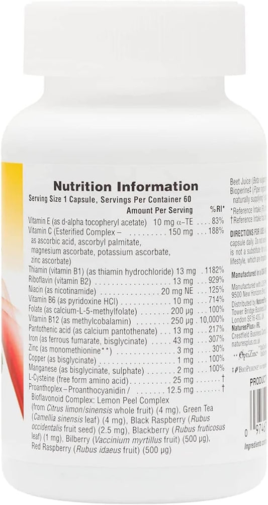 Natures Plus Hema-Plex Iron Capsules - 60 Fast-Acting Capsules with 85mg Chelated Iron for Total Blood Health - Vegan & Gluten Free