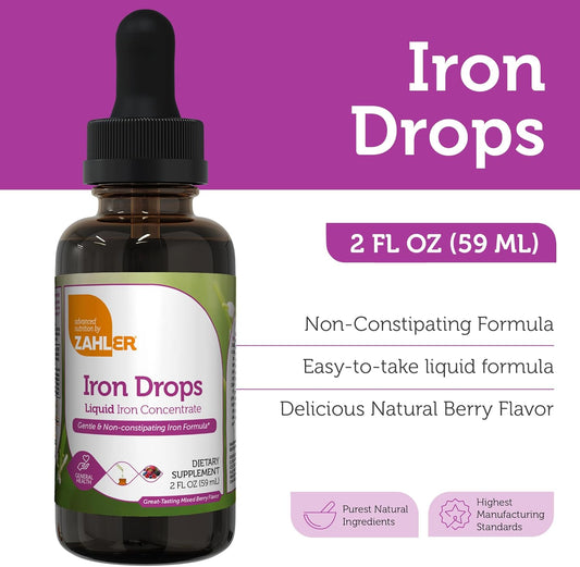 Zahler Liquid Iron Drops, 2 Fl OZ - Gentle & Non-Constipating Iron Supplement