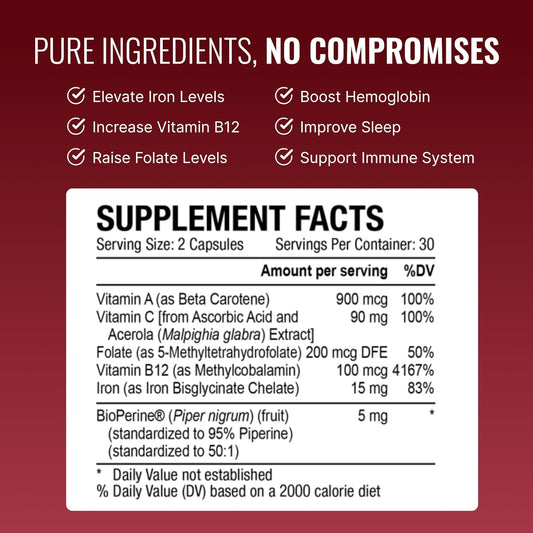 Anemiaprin by Approved Science - Iron and Vitamin C Supplement - Easy on Stomach - 60 Capsules - 30 Day Supply - Non-GMO, Vegan Formula