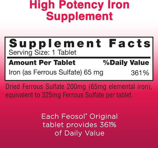 Feosol Original Iron Supplement Tablets - 325mg Ferrous Sulfate - Energy & Immune Support - 120ct - Made in USA