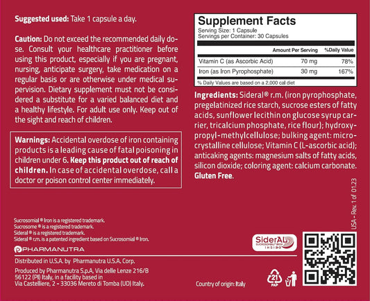 Premium Iron Supplement with Vitamin C for Men & Women - Supports Anemia & Iron Deficiency - High Absorption - Gentle on Stomach - Non-Constipating - 30 Capsules