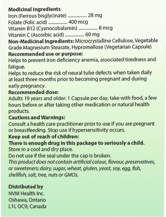 Gentle Iron Supplement with Vitamin C, B12, Folic Acid - Supports Red Blood Cells & Immunity - 90 Vegetarian Capsules