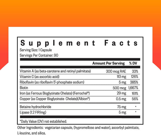 Optimal Iron Supplement with Vitamin C and Riboflavin - Supports Iron Metabolism and Utilization - 90 Capsules